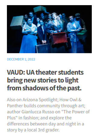 As a part of my role as Assistant Producer for AZPM's Arizona Spotlight, I create stories that shine a light on the rich and diverse culture of Tucson, as well as stories I want to bring to the attention of my community. In addition to working on show content, I engineer most of the interviews and segments we air, and I am responsible for the weekly webpages that accompany our shows.Below you will find links to some of the many pieces of mine that have aired on Arizona Spotlight. Each of my interviews are completely done by me, from pitch to publish! This includes all editing, which I do using Adobe Audition.